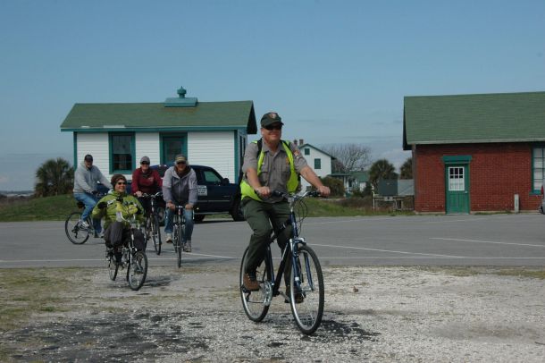 The Fort Pickens area of Gulf Islands National Seashore can be explored many ways, but Park Ranger Mike Aymond said biking is the best. “It’s quiet, so it allows you to sneak up on things,” he told a group of about 35 cyclists March 8 who had gathered for the park service’s “Peddling at Pickens” program.