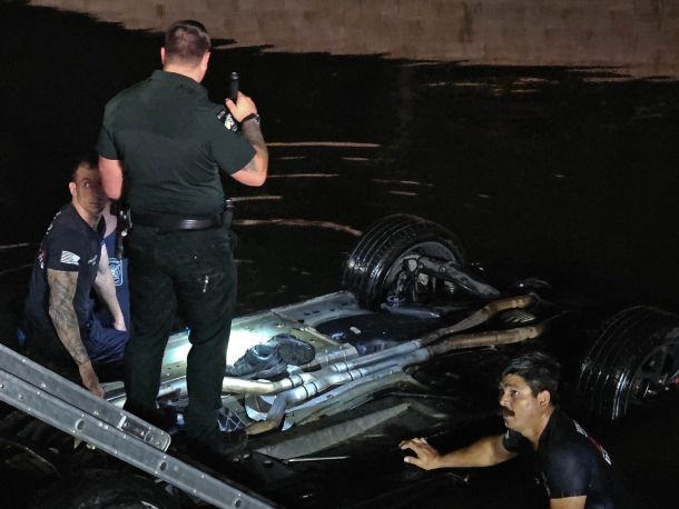 Bystanders credited with rescuing people from submerged car