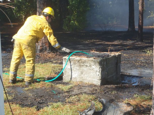 A fire that began in a trash container at a residence last Wednesday on Candlewood Drive in Holly by the Sea was put out by firefighters before reaching the home’s interior.