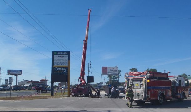 Crane strikes power lines on Navarre Parkway