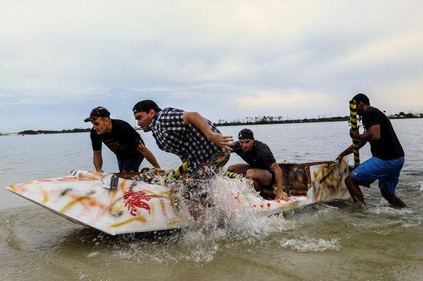 The smell of food, the sound of music, and stormy weather filled the air for the 25th Annual Cardboard Boat Regatta at Hurlburt Field.