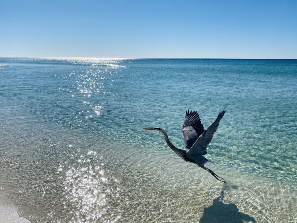 “I snapped this shot of a blue heron that followed me on my walk. It was the most perfect day. The water was calm and crystal clear,” said Ashley Bright.