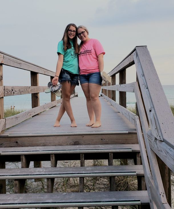 Today’s Photo of the Day was taken by Valerie McCollister of her teenage daughters, Ali and Loralei, walking over to the Gulf from their condo at Beachview.