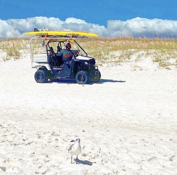 Sometimes the lifeguards on Navarre Beach get a little help keeping watch over the emerald green waters.