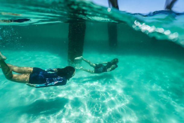 Sometimes the lifeguards on Navarre Beach get a little help keeping watch over the emerald green waters.