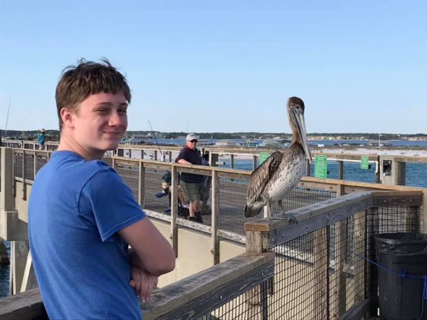 Today’s Photo of the Day was taken on Navarre Beach Fishing Pier by Jessica Loescher of her son posing with a pelican.