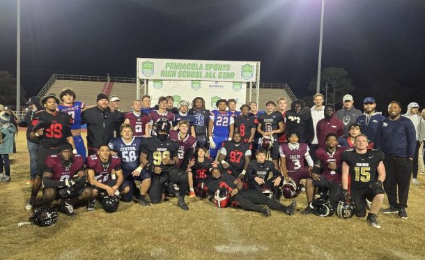 One last high school football game was played Friday as the East battled the West in the Pensacola Sports Association All-Star Game.