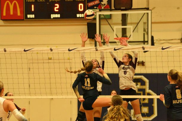 She just missed on getting her hand on the ball as it fell to the floor and led to another point late in the third set against the Dolphins.