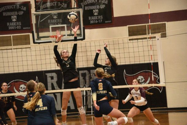 Arms raised. Smiles wide. Another win in the books for Navarre’s volleyball team.