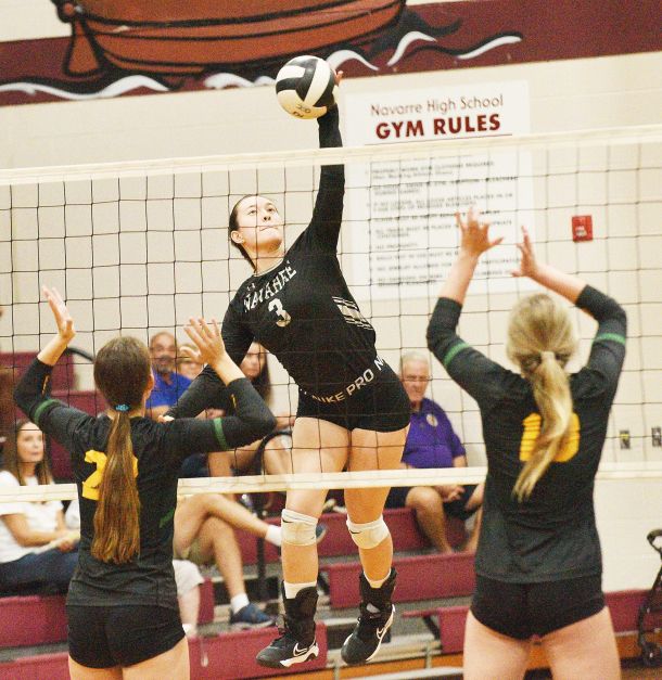 Emma Gross was active and making plays on the court for Navarre’s volleyball team in a match against Gulf Breeze in early September.