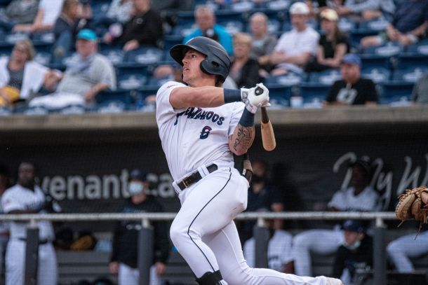 Peyton Burdick swinging hot bat for Blue Wahoos
