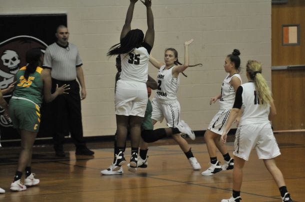 Z’kiyah Jones enters the game late in the fourth quarter of Navarre’s convincing win over Pensacola Catholic last Monday night. She hits a couple of free throws and even scores off a rebound.