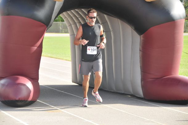 Mike Baker was the first one across finish line Saturday morning at the inaugural Navarre Raider 5K, but his victory wasn’t nearly as important as the cause he was supporting.