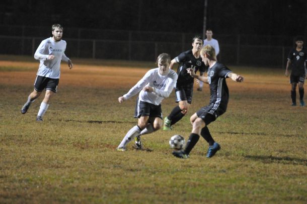 Rain poured down last Monday night as Navarre’s boys soccer team battled Niceville in a crucial district game at the NYSA Complex.