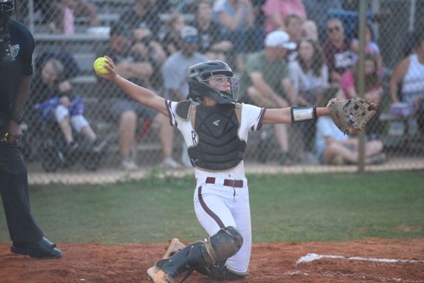 But around the time she started playing travel softball, she moved behind the plate.