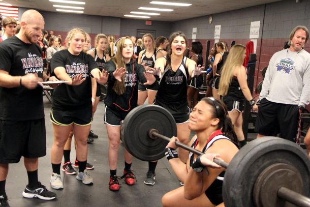 The Navarre boys’ weightlifting team won their first dual meet of the season against Pine Forest at home Feb. 19 by a score of 59 – 31. For many of the lifters, the meet served as an educational opportunity. Coaches who doubled as judges made sure that each competitor understood any fouls detected and how to avoid them.