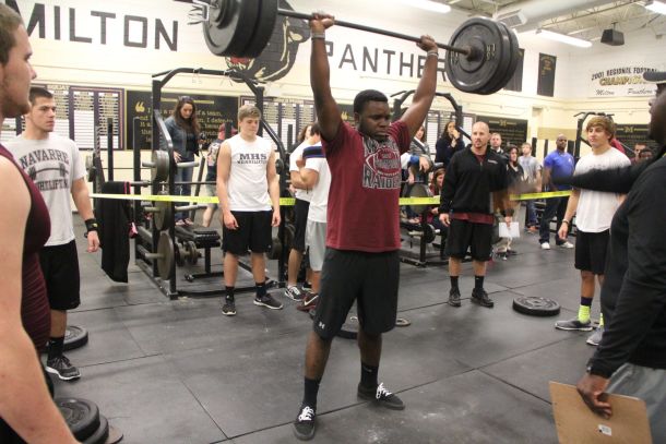 Navarre High School’s boys’ weightlifters traveled to Milton and dominated the five heavier weight divisions, winning the dual meet by a 52-38 score.