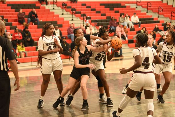 Isabella Miranda came up with a steal that set up a second chance opportunity for the Navarre Raider girls basketball team in the fourth quarter of a game against Pensacola Monday afternoon.