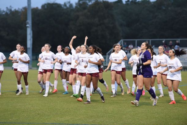 For one half, the eighth-seeded Raiders were in the game, keeping it scoreless through the first 40 minutes, an impressive feat in itself considering the Mustangs were unbeaten, ranked in the top five nationally and had scored five or more goals 11 times.
