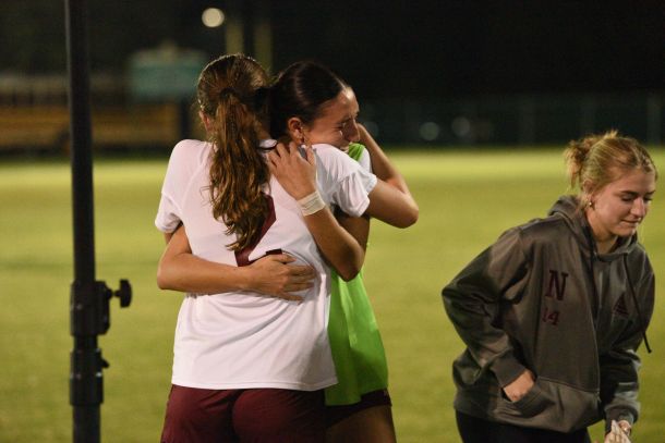 A similar scene played out across the Navarre Raider girls soccer sideline, and on the field, players in tears, doing their best to console one another.
