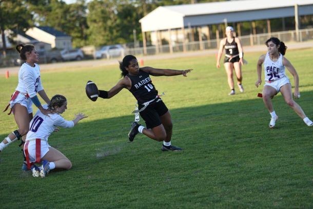 Navarre’s hope for a victory in a Region 1-2A flag football semifinal was renewed when Bella Kendall connected with Natalie Busch in stride on a scoring strike at the start of the fourth quarter.