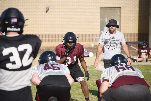 Garrett Bagley was on his lunch break when a call came in to talk about his role as the new head coach of the Navarre Raider football team.