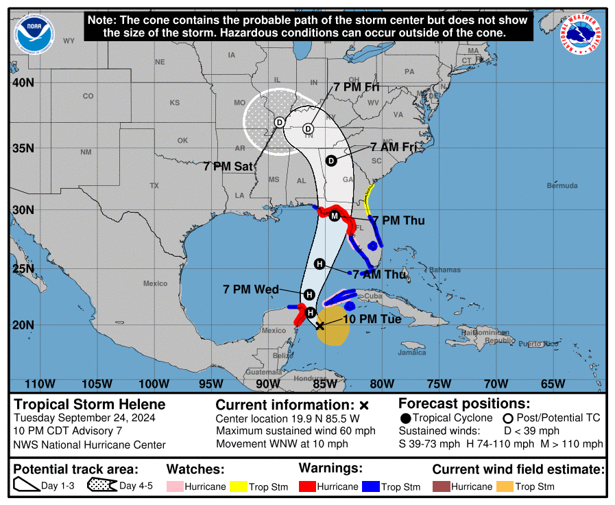 Hurricane Helene, now a category two storm, is expected to make landfall around 7 p.m. tonight in Florida’s big bend. The impact on Santa Rosa County is minimal, even to the point that little rainfall is forecasted. Here’s the latest updates from a local perspective: