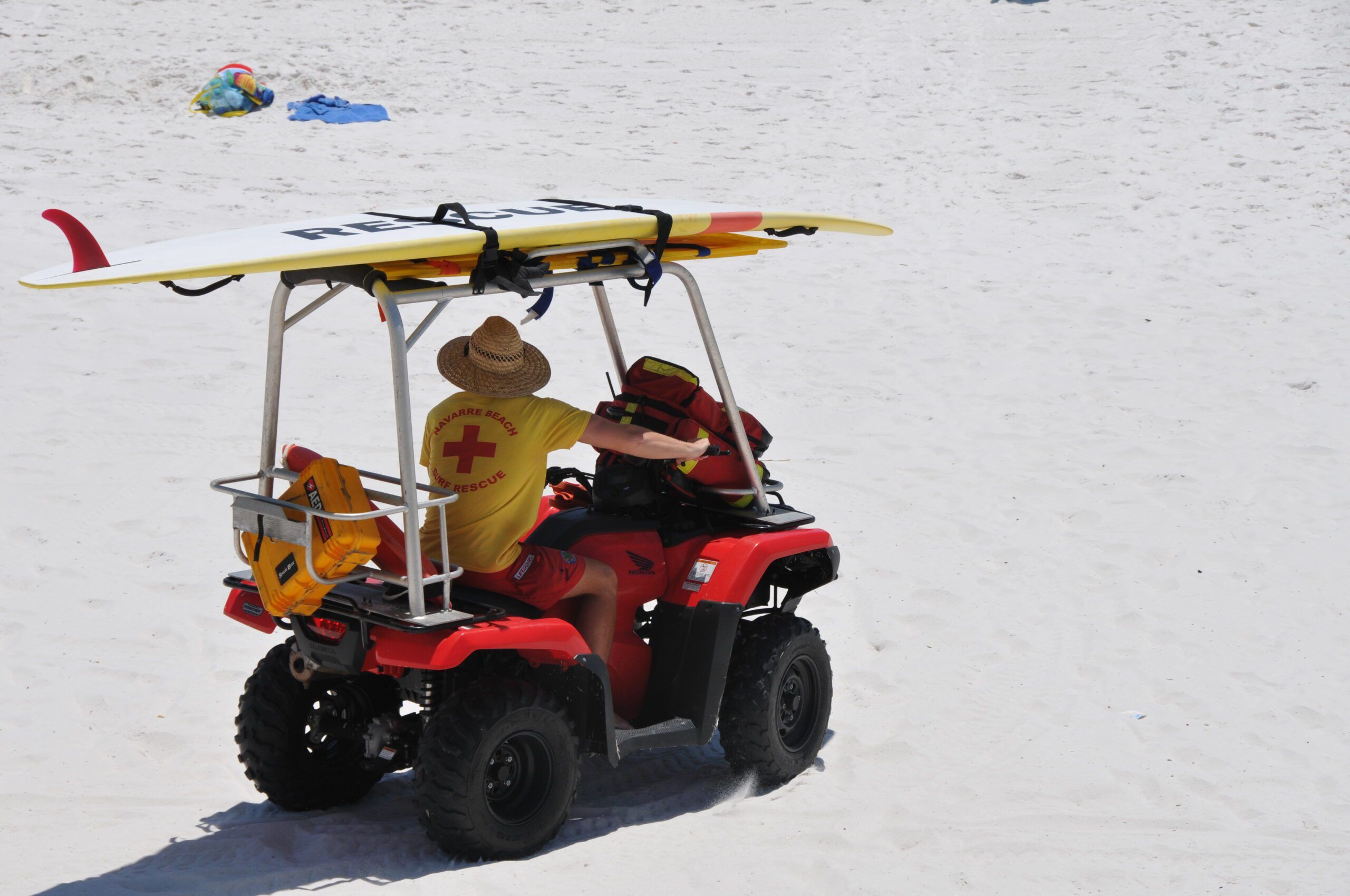 On Saturday, Santa Rosa County lifeguards began patrolling the west side of the Navarre Beach Fishing Pier with all-terrain vehicles – a move praised by island residents and first responders.