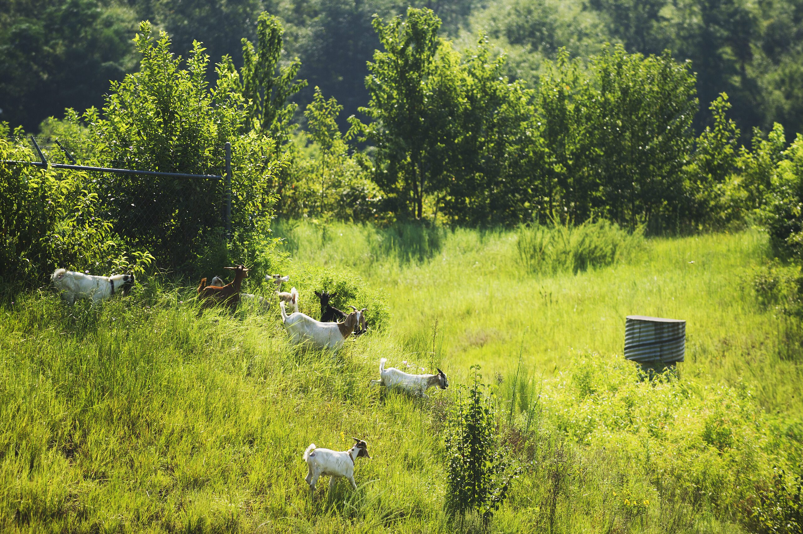 Thirteen goats that were deployed to eat overgrown grass, weeds and bushes in a subdivision detention pond in August have taken to their job with gusto.