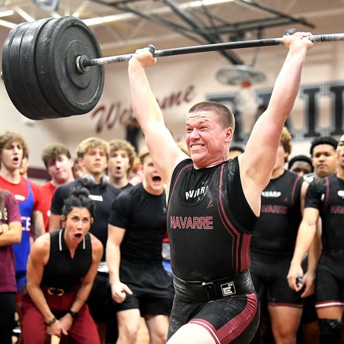 Roan Strom wasn’t going to let anything stand in the way of him breaking a Navarre invitational record in the clean and jerk.