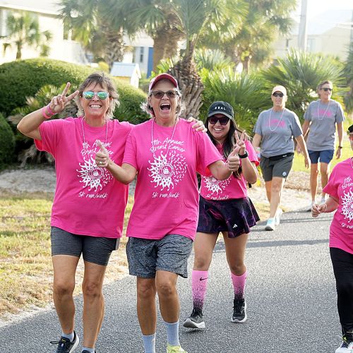A sea of bright pink stretched across Navarre Beach’s multi-use path Saturday, Oct. 18.