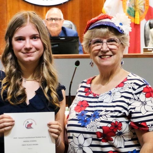 At the Board of County Commissioners meeting May 22, local middle school students and one high school student received awards for their essays about the American government.