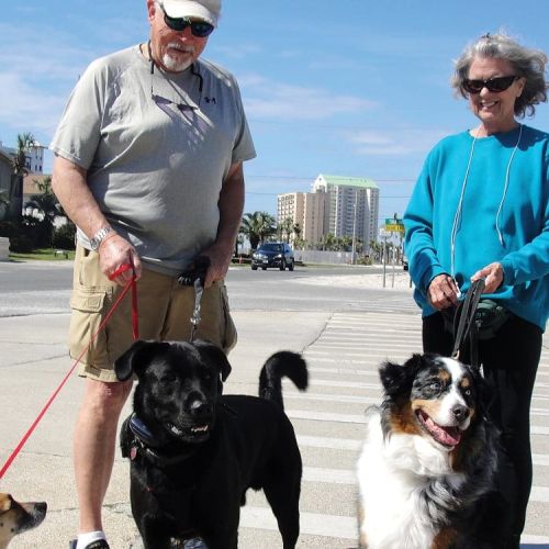 On sunny days on the fitness trail along Gulf Boulevard at Navarre Beach you will find many people strolling with and without their pets.