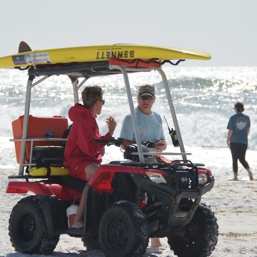 The Navarre Beach Safety Division is in its third year. There are 30 lifeguards on staff that range in age from 16-61 and they are employed by the Navarre Beach Fire and Rescue.