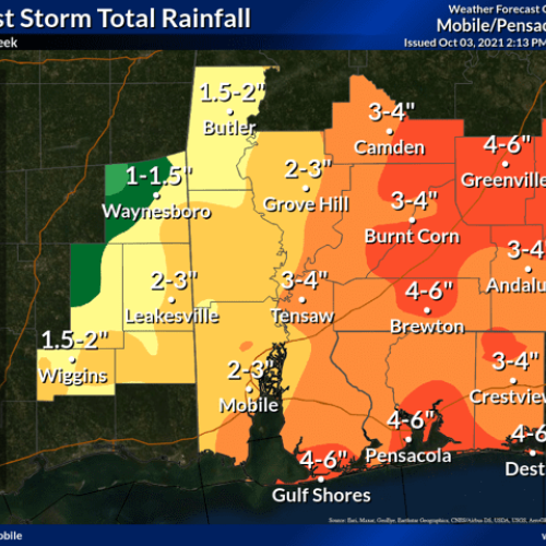 About 2 to 4 inches of rain have already fallen across southern Santa Rosa and Okaloosa counties and an additional 1-inches is possible, according to the National Weather Service’s flash flood warning issued at 8:20 a.m. Monday morning.