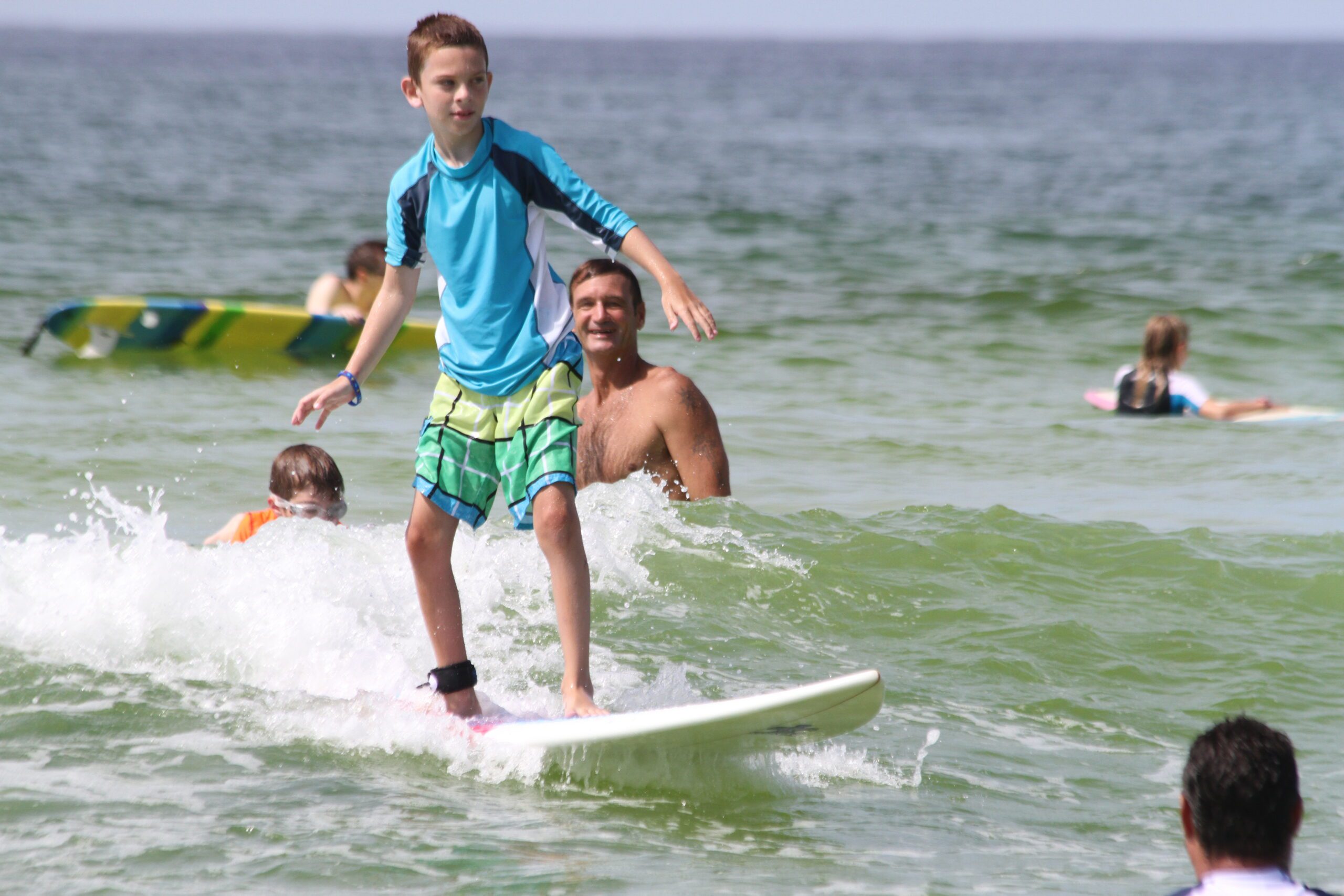 Richard Weeks, Autism Surfs organizer, looks on as a young surfer navigates the waves