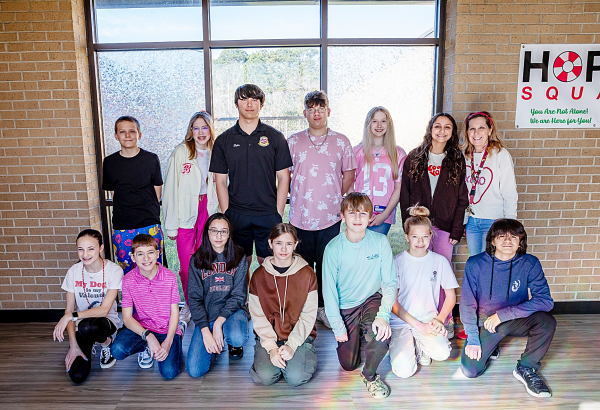 Holley Navarre Middle School students going to the state science fair. Pictured: front row (left to right) Lauren Armstrong, Boston Rice, Olivia Miller, Klara George, Ian Clemons, Julia Bailey, Camreyn Corpuz. Back row (left to right) Ian Nugent, Lorelai Goulette, Ryu Heiss, Ishi Musto, Kayleigh Broughman, Sophia Della Ratta, Jodi Russell (teacher).