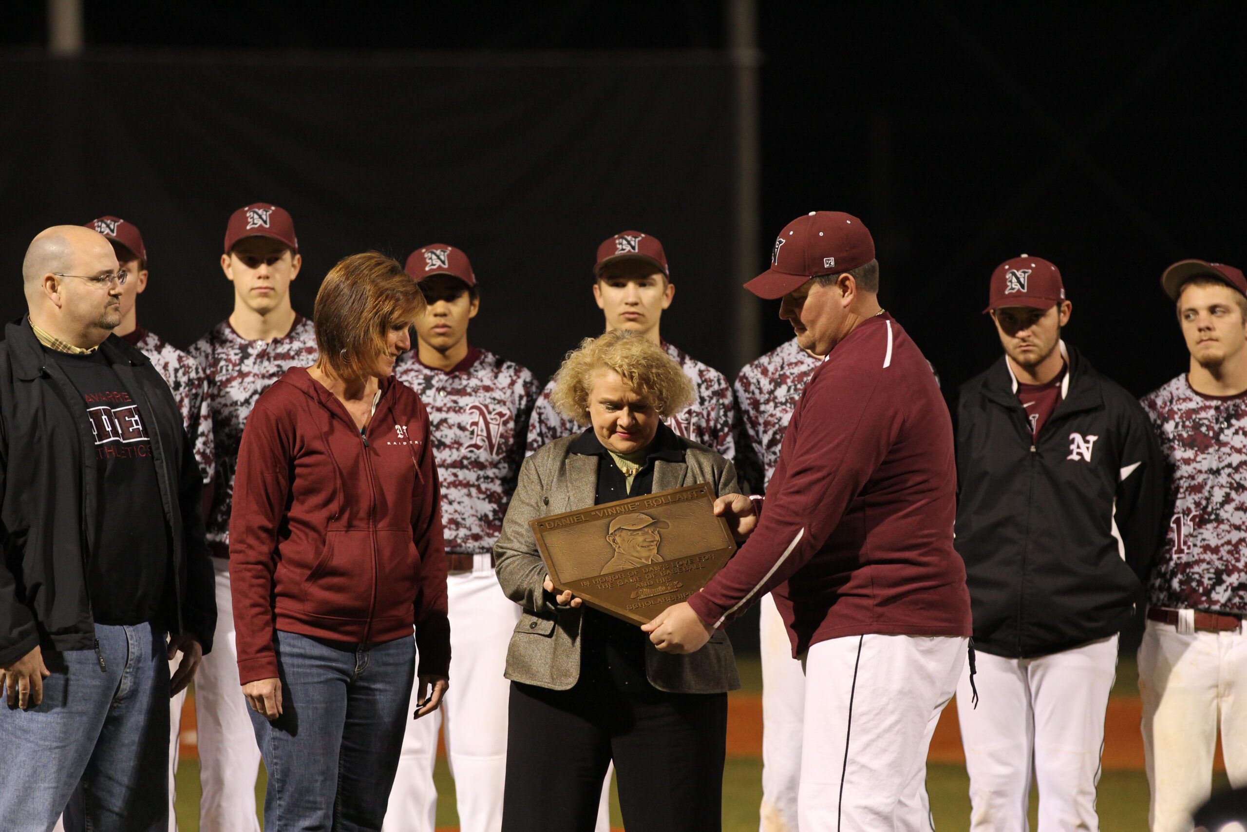 Navarre High School’s baseball program honored long-time supporter Dan Rollant, the late restaurateur who brought Vinnie R’s Italian Restaurant to Navarre, on Friday before losing 7-2 to visiting rival Pace. The Raiders started the week with home wins against Pensacola and Pine Forest.