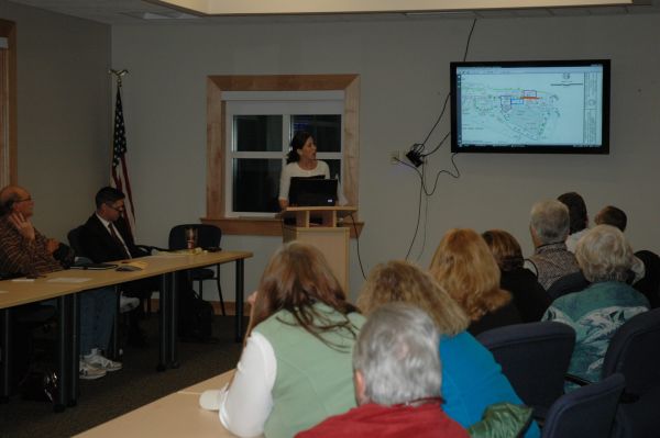 County Grants Director Sheila Harris points out proposed expansions for amenities at Navarre Park during a Feb. 3 public meeting