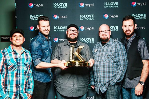 Mike Weaver (center) holds a 2013 K-Love fan award alongside his bandmates from Big Daddy Weave, a Contemporary Christian band. Weaver and his brother, Jay, (right of Mike) grew up in St. Paul United Methodist Church in Midway.
