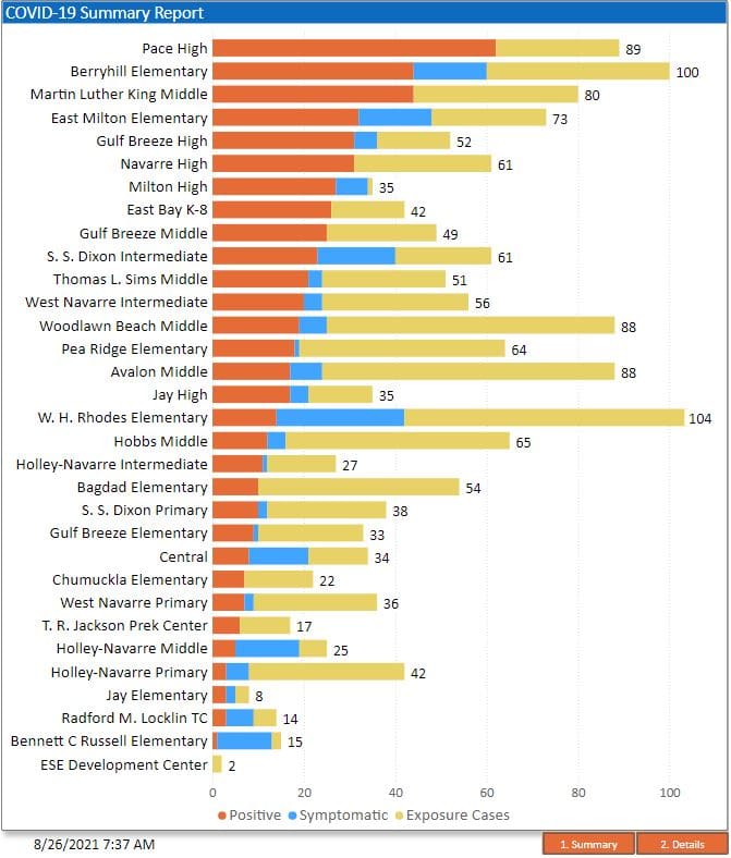 The COVID-19 summary report for the Santa Rosa County School District, updated Aug. 26.
