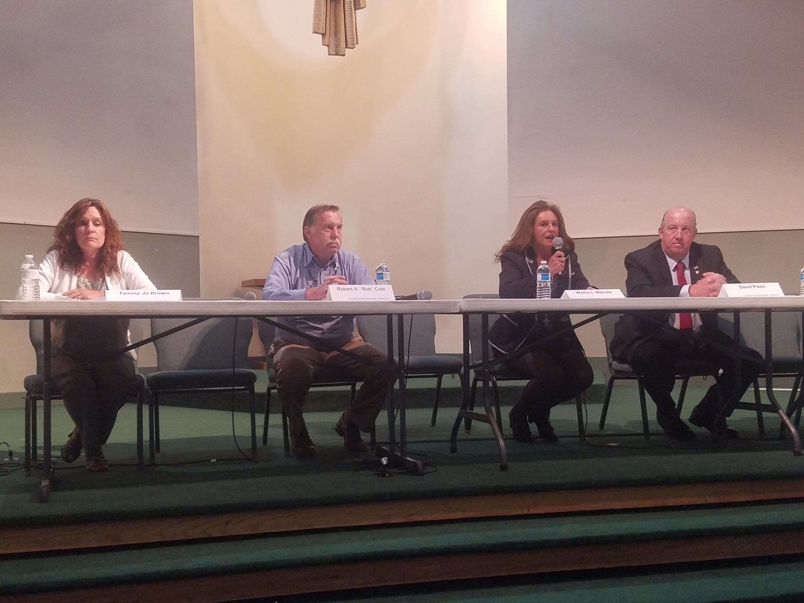 Precinct 34, an initiative to improve voter turnout in the Navarre area, brought together more than a dozen candidates for a variety of offices to debate the issues April 17.