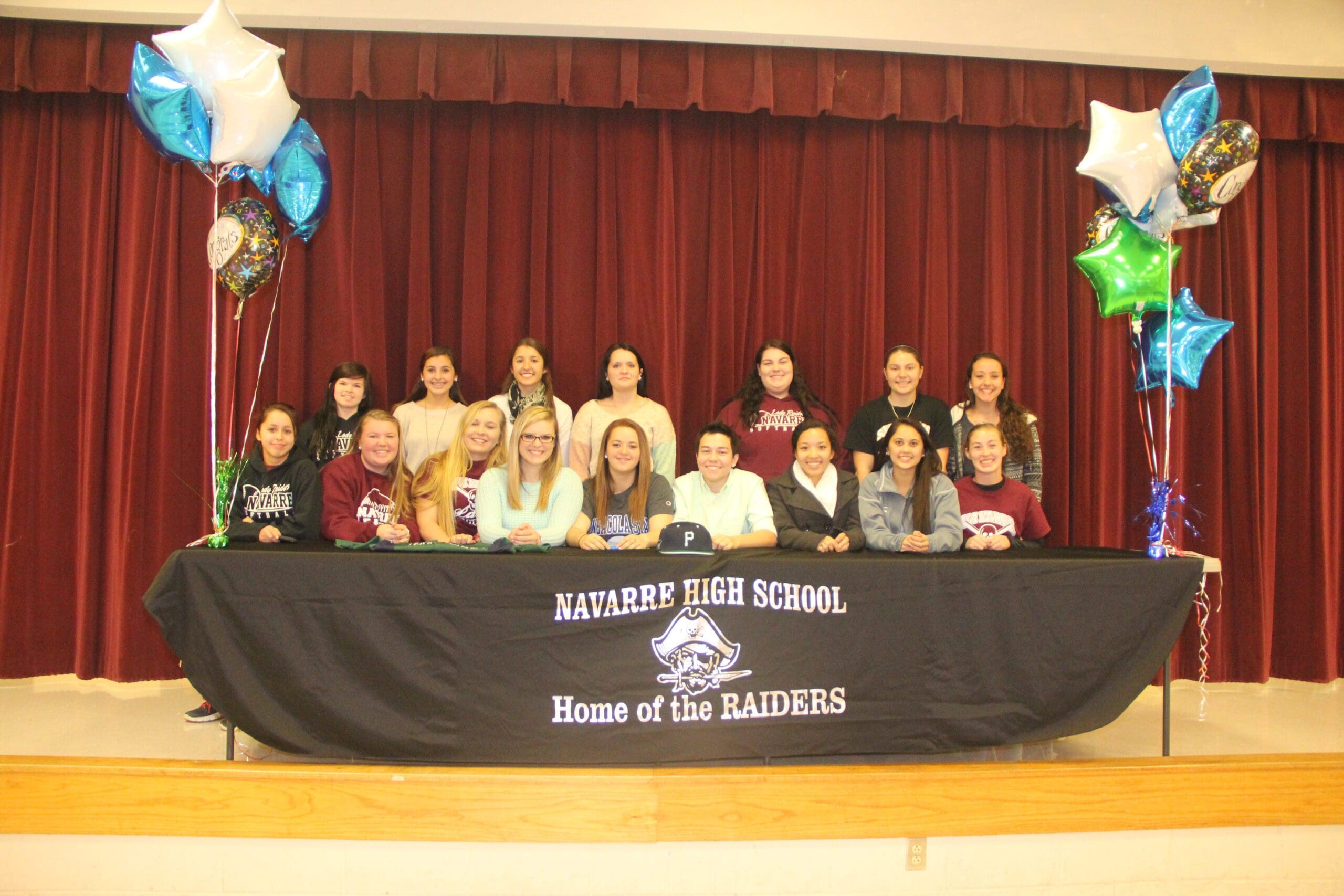 Allison ‘Cat’ Pettegrew and Jenna Bobbitt get congratulations from teammates after signing with Pensacola State College