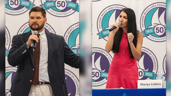 Two challengers for Elizabeth Hewey’s seat faced off in a forum on July 24 at East Bay K8 School in Navarre.