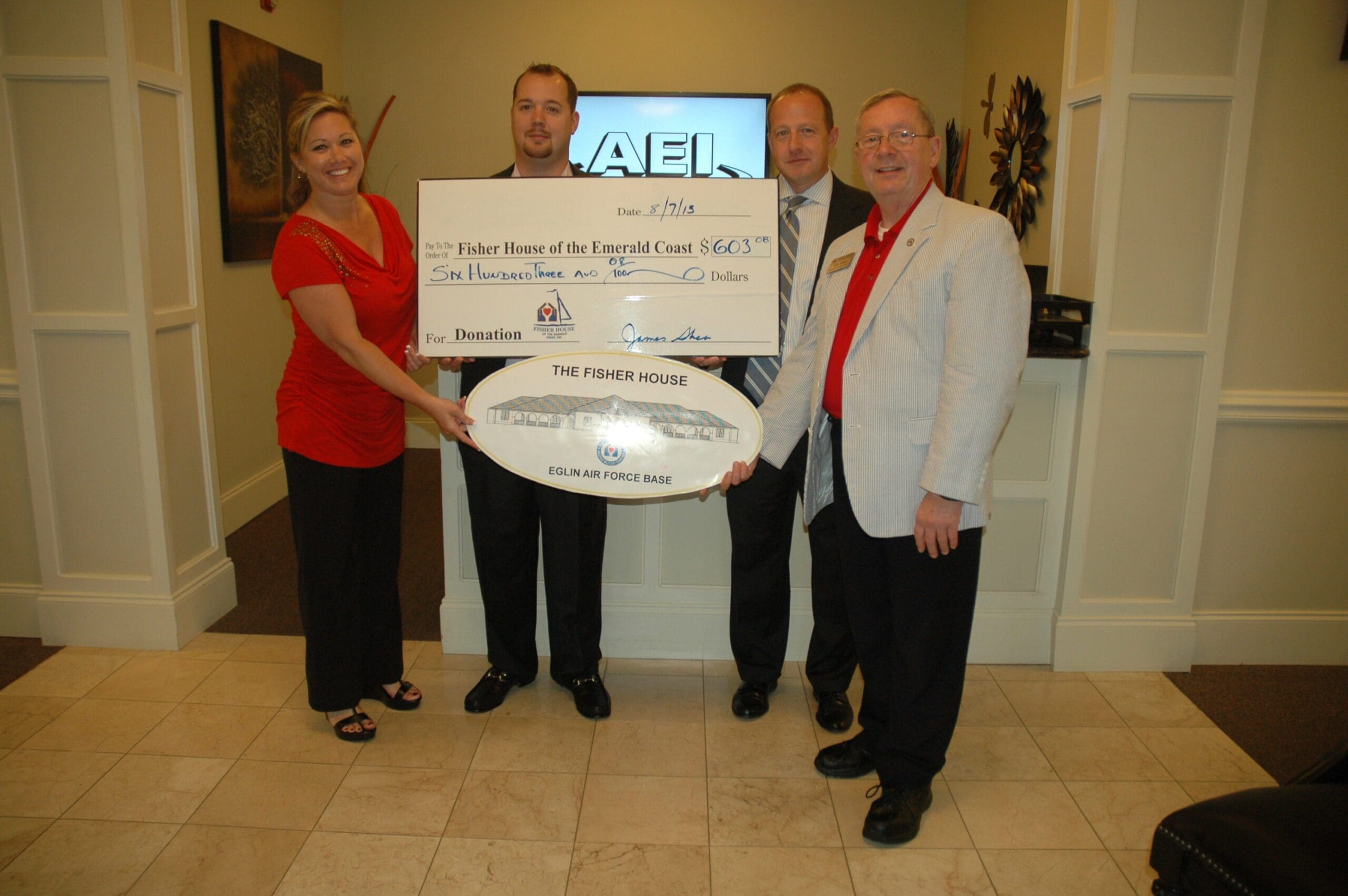 AEI donated money to the American Cancer Society, Autism Society and the Fisher House on Thursday.