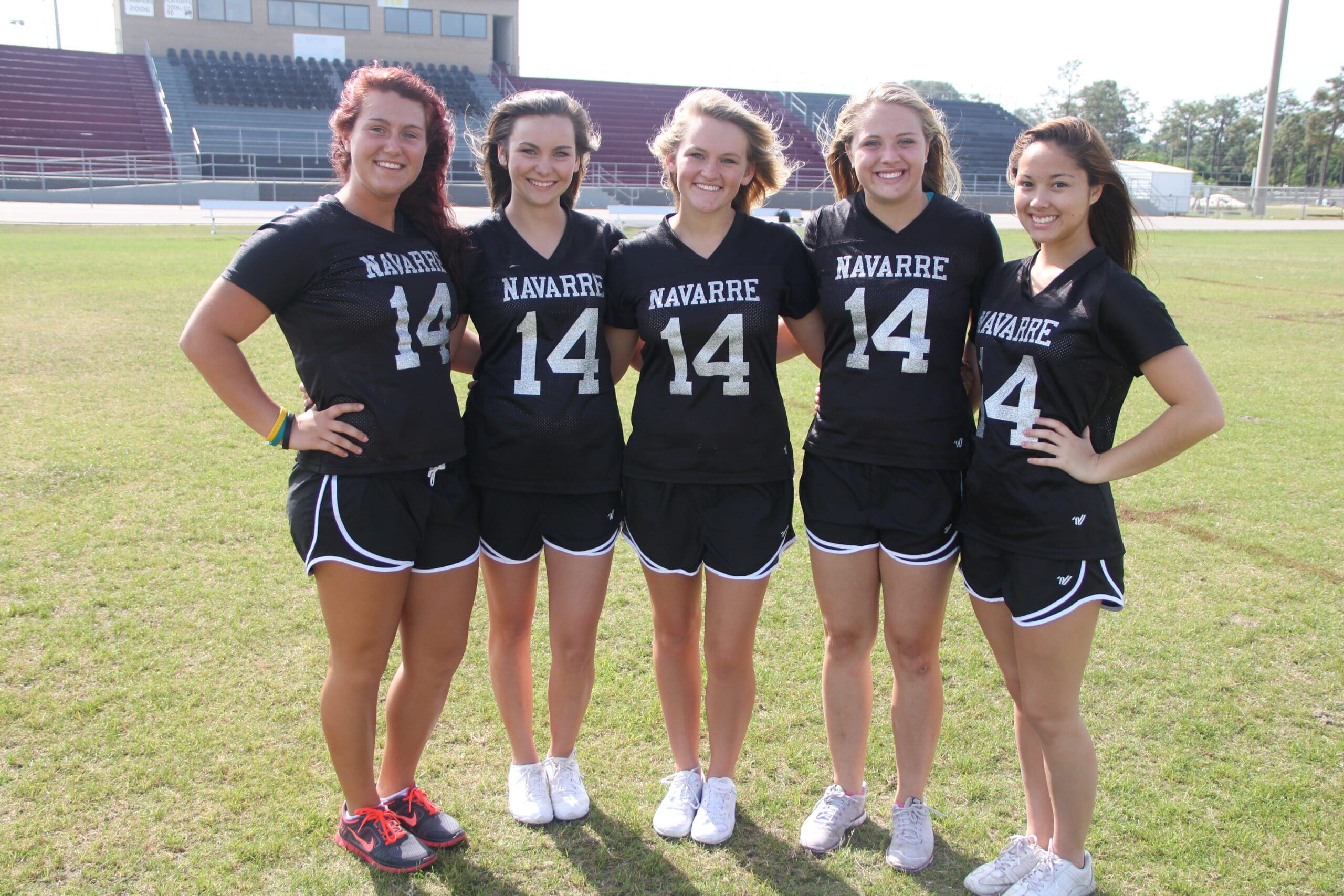 Morrigan Webb, left, Skylar McQueen, Alyssa Chandler, Savannah Rodwell and Hannnah Lewis are ready for some football