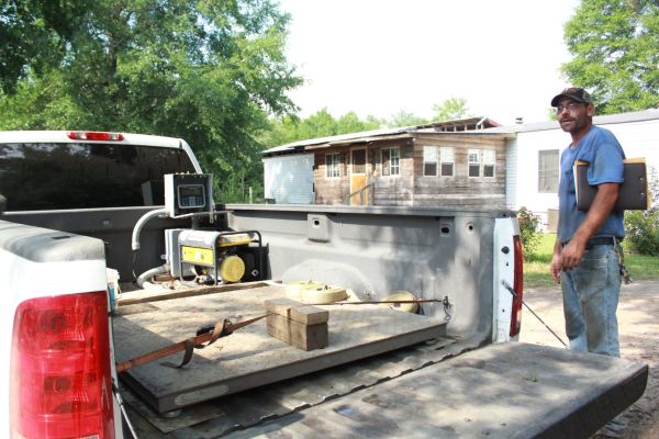 Joshua Pittman’s pickup truck carries the scales necessary to price scrap metal for his business, Pittman Recycling. Pittman refers to the truck as his mobile office. He stopped picking up materials Thursday, June 23, after the Board of County Commissioners denied a conditional use permit for Pittman’s residence.