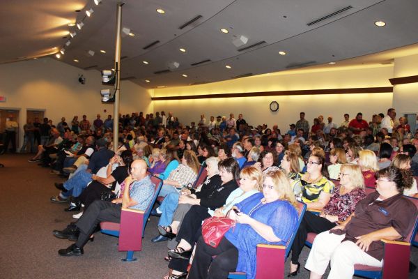 Santa Rosa County Commissioners voted to fund a three percent raise for county employees without increasing property taxes at Monday’s final budget hearing. The move seemed to satisfy an overflow crowd of not only off-duty deputies and other county employees seeking raises, but also local tea party activists opposing tax hikes.