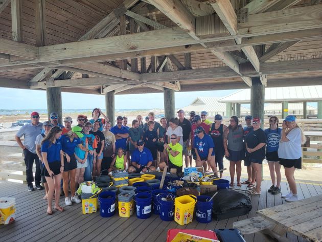Adams Sanitation, Navarre Area Board of Realtors, Navarre High School’s Shock and Awe EV racing team, and other groups and businesses came together April 22 for a beach cleanup in honor of Earth Day.