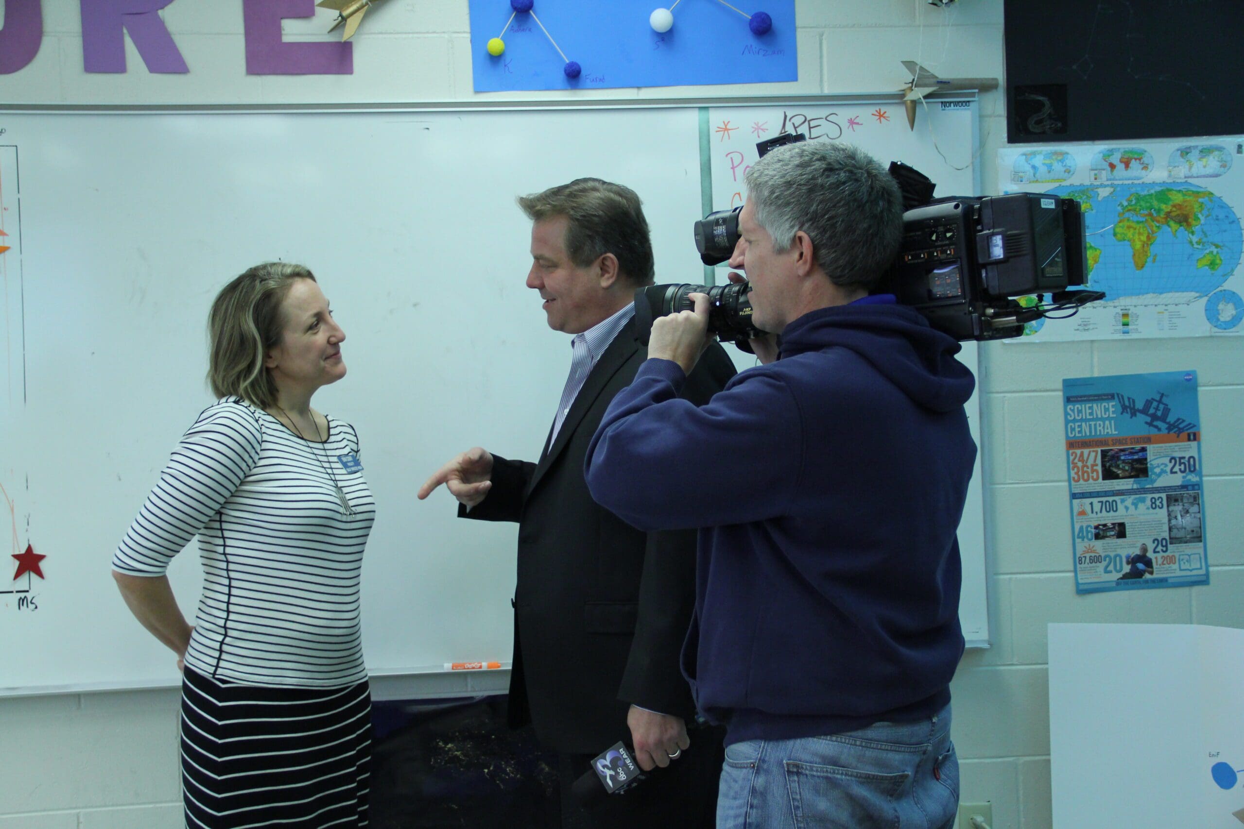 As Gulf Breeze High School science students tapped away on their computers Jan. 24, a flurry of school district administrators, teachers and people wielding cameras came barging through the doorway with a surprise announcement to make.